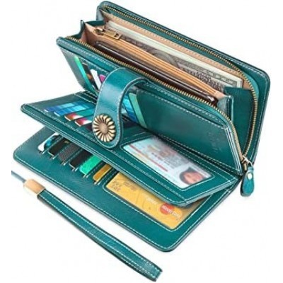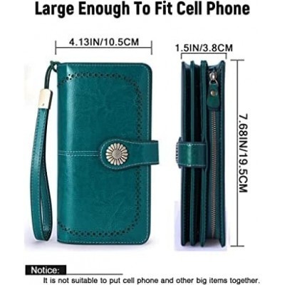 High Capacity RFID Blocked Genuine Leather Womens Wallets with Trifold Wristband Ladies Billfold