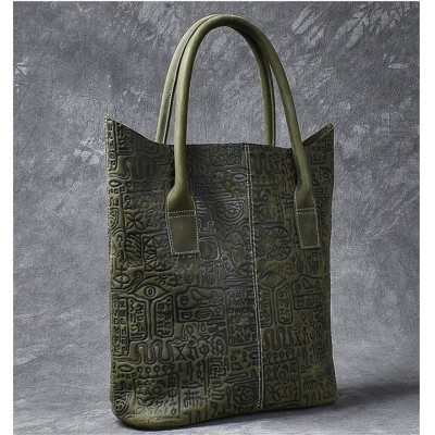 Vintage embossed design genuine leather men large-capacity tote bag high-quality crazy horse cowhide