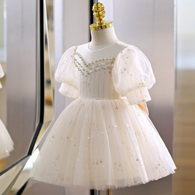 فستان صيفي جديد أنيق على الطراز الكوري، بلون الشمبانيا، بياقة دائرية، مناسب للفتيات