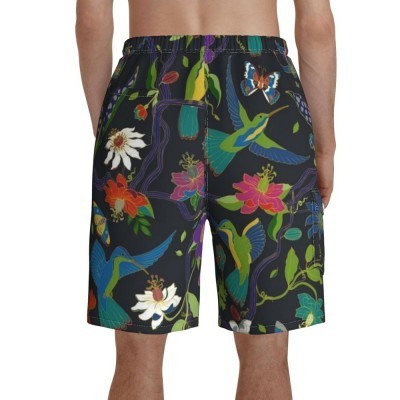 Bañador tropical con estampado de pájaros y flores, cómodo pantalón corto de playa para hombre con c