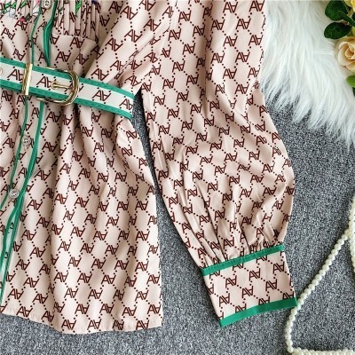 الرئيسية > vestir > Fashion Vintage Two Piece Set 2022 Summer Turn Down Collar Long Sleeves Blouse Lady Tops+ Shorts Wom