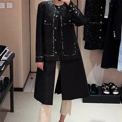 الرئيسية > French Hepburn Woolen Coat Womens 2022 Autumn and Winter New Design Bright Silk Flowers Round Neck