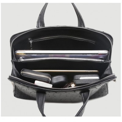 2022 New Luxury Ostrich Leather Mens Briefcase Business Office Handbag Large Capacity Password Lock【
