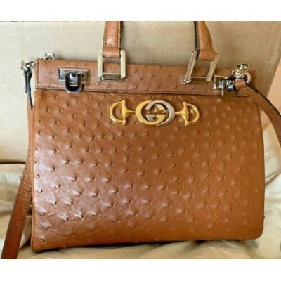 الرئيسية > vestir > Extrañar > Кошелек GUCCI ZUMI из кожи страуса 54 коричневая сумка через плечо с замком и ручкой сверху