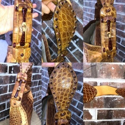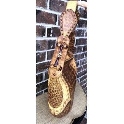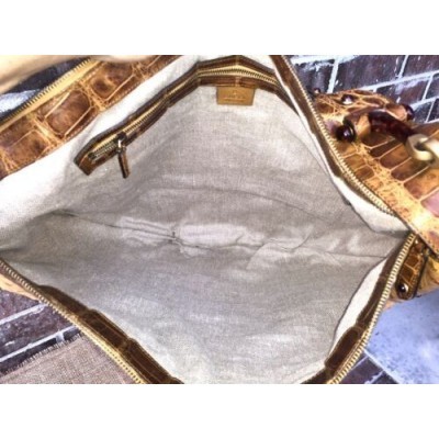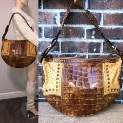 Gucci Brown Croc Ostrich Patchwork Bag
