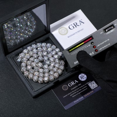 10mm Sparkling Moissanite Tennis Chain Necklace 100% 925 Sterling Silver Pass Diamond Test Fine Jewe