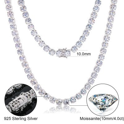 الرئيسية > mirar > otro > 10mm Sparkling Moissanite Tennis Chain Necklace 100% 925 Sterling Silver Pass Diamond Test Fine Jewe