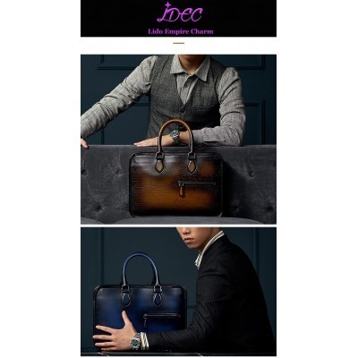 Luxury Mens Handbag High Quality Calfskin Patina Briefcase Classic Rubbing Colors Engraving Designe