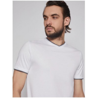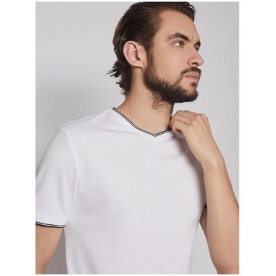تيشيرت أبيض بياقة على شكل حرف V مصنوع من القطن بنسبة 100%، مقاس M (قطعتان)