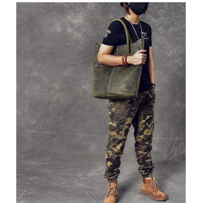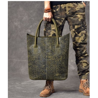 Vintage embossed design genuine leather men large-capacity tote bag high-quality crazy horse cowhide