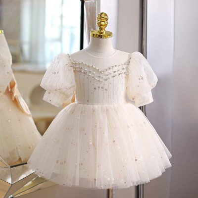 فستان صيفي جديد أنيق على الطراز الكوري، بلون الشمبانيا، بياقة دائرية، مناسب للفتيات
