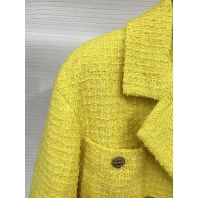 Autumn Women Short Double Breasted Tweed Jacket Luxury Brand Designer Vintage Office Lady Slim Fit C