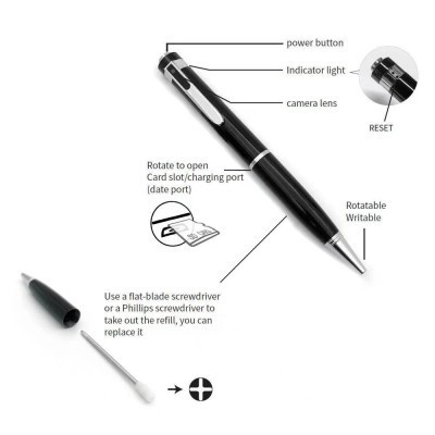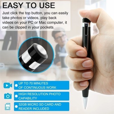 تتميز هذه الكاميرا الصغيرة المحمولة على شكل قلم بأربع وظائف في جهاز واحد: تسجيل عالي الدقة 1080 بكسل