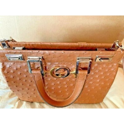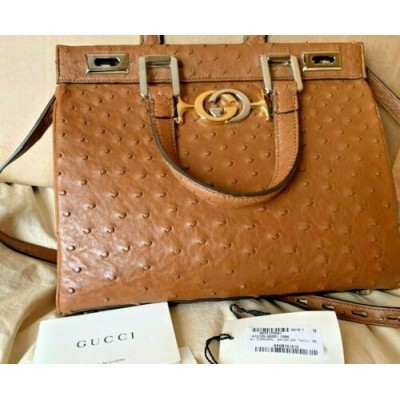 الرئيسية > vestir > Extrañar > Кошелек GUCCI ZUMI из кожи страуса 54 коричневая сумка через плечо с замком и ручкой сверху