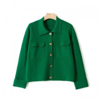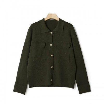 3 Colors Womens Turn-down Collar Sweater Long Sleeve Safari Style Ladies Simple Knit Cardigan with