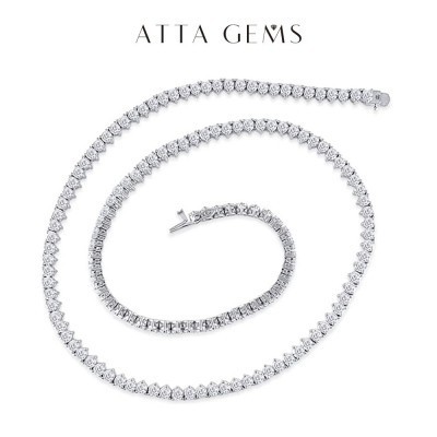 الرئيسية > vestir > Extrañar > ATTAGEMS Brand 925 Silver Tennis Necklace Round Cut 6.5mm D Color White Moissanite for Women Elegant