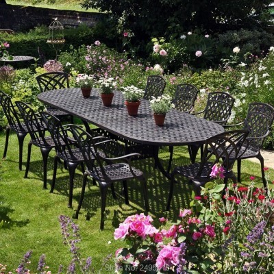 الرئيسية > exterior > Hot 11-piece set Durable anti-rust metal dining chair and table Villa cast aluminum patio furniture