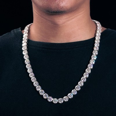 الرئيسية > mirar > otro > 10mm Sparkling Moissanite Tennis Chain Necklace 100% 925 Sterling Silver Pass Diamond Test Fine Jewe