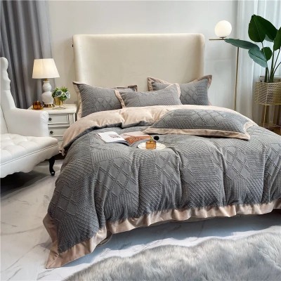 Текстиль для дома, комплект постельного белья в скандинавском стиле, бархатное пододеяльник с кристаллами, наволочка, зимний плюшевый комплект из 4 предметов, принадлежности для двуспальной кровати