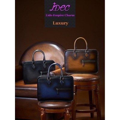 Luxury Mens Handbag High Quality Calfskin Patina Briefcase Classic Rubbing Colors Engraving Designe
