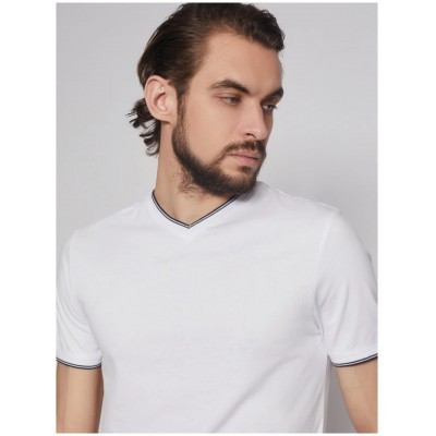 تيشيرت أبيض بياقة على شكل حرف V مصنوع من القطن بنسبة 100%، مقاس M (قطعتان)