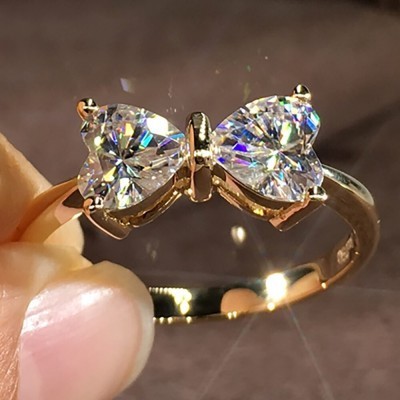 الرئيسية > mirar > otro > 18K Au750 Gold Women Ring Moissanite Diamonds Heart Bowknot Elegant Wedding Party Engagement Anniver